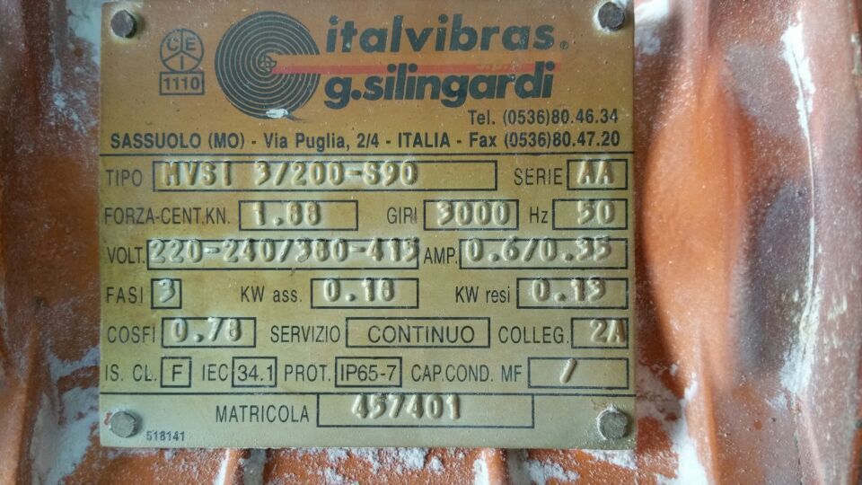 ITALVIBRAS Italvibras MVSI 10/5200-S02 功率:3.8KW 电压:400V 离心力:51.1KN 频率:50HZ 转数:1000RPM